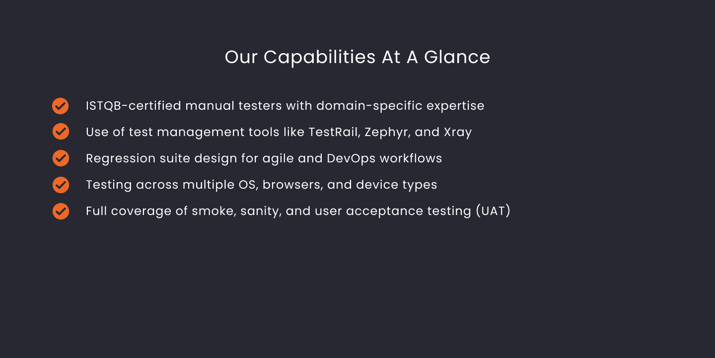 Our engineers build modular test frameworks that adapt to your evolving tech stack, reducing maintenance and long-term QA overhead.