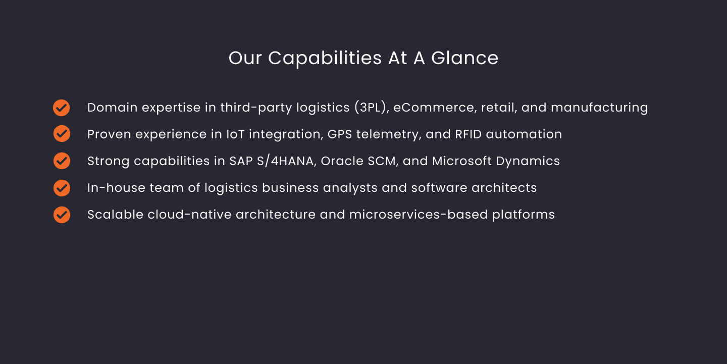 Our specialized technology services are tailored for the unique needs of logistics, shipping, transportation, and supply chain management enterprises: